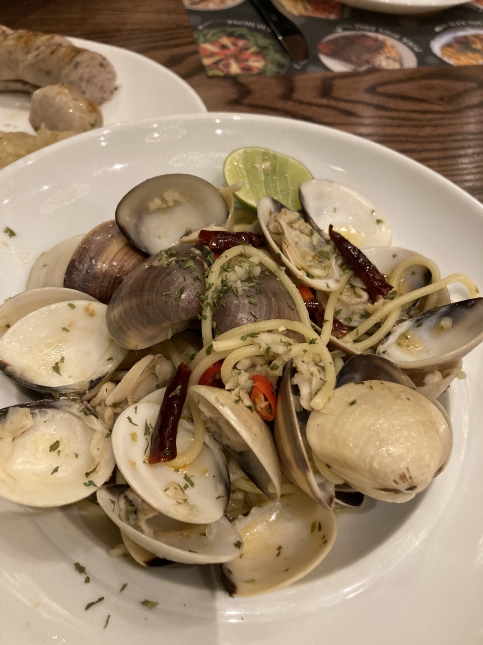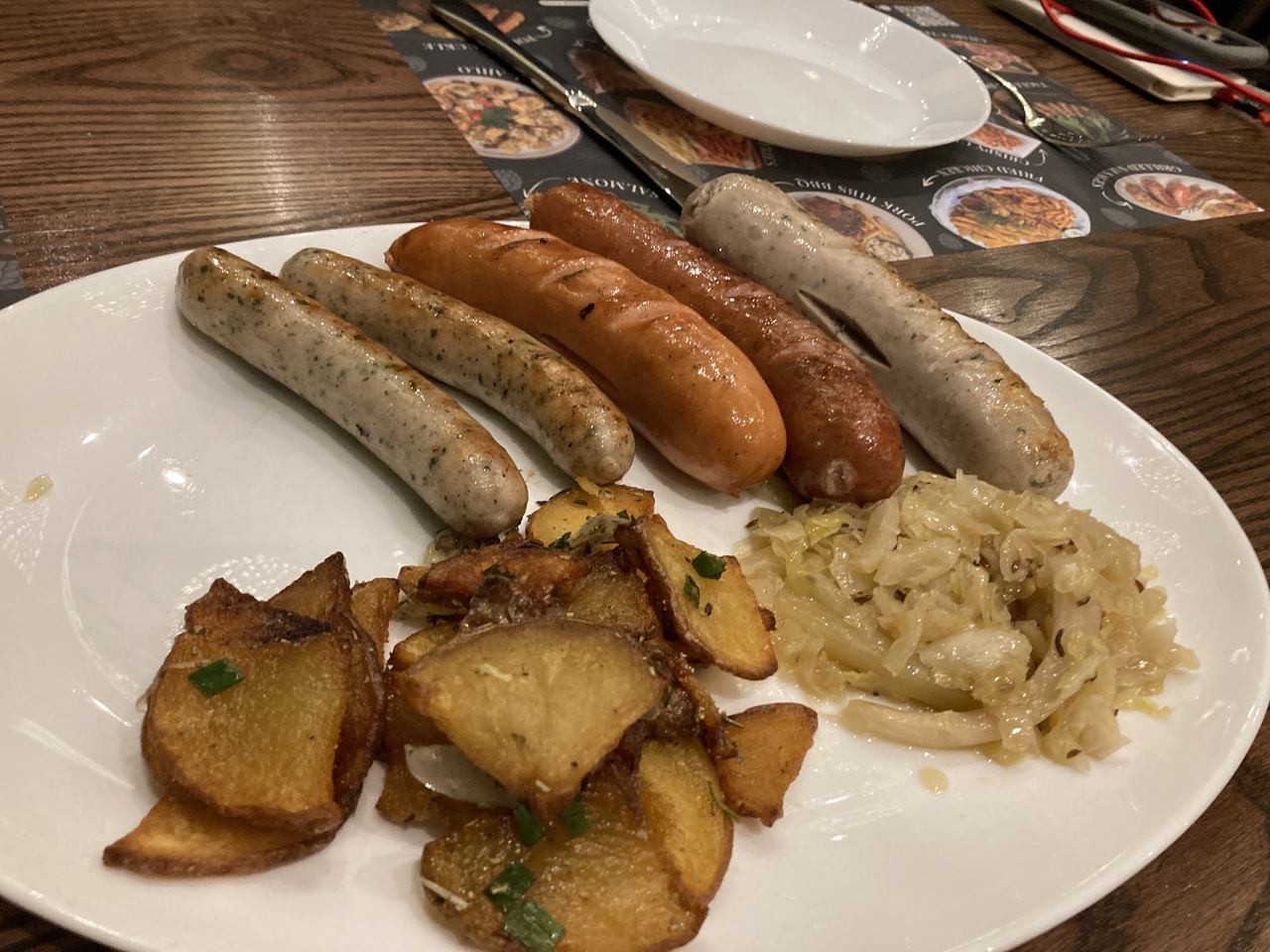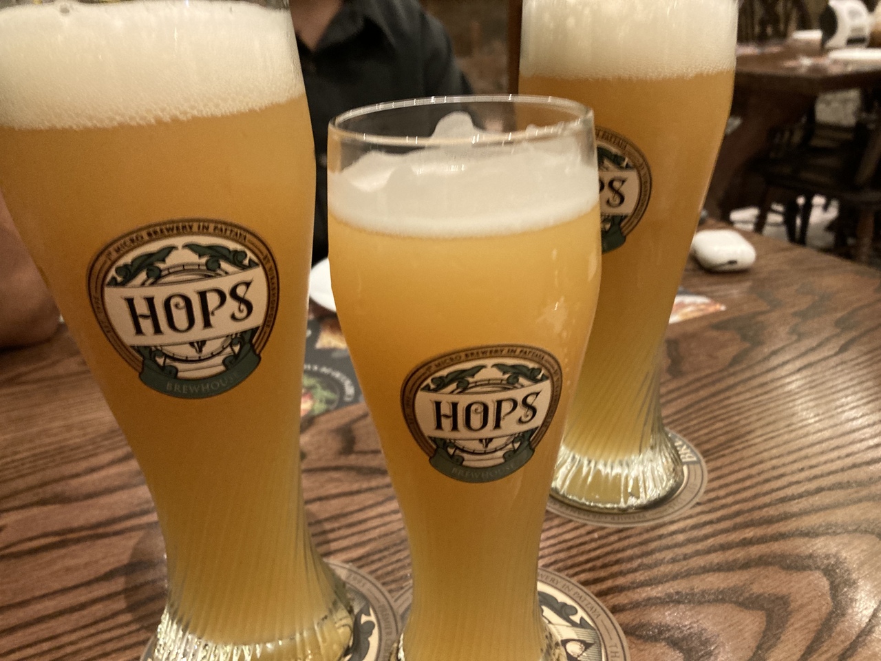 パタヤに来たら訪れたいと思っていたお店です。観光客でとても賑わっています。店内はとても広く、すぐに席を案内してもらえました。ピザやウインナーも美味しく、ボリュームがあります。時間によっては店内でバンド演奏を楽しむこともできます。