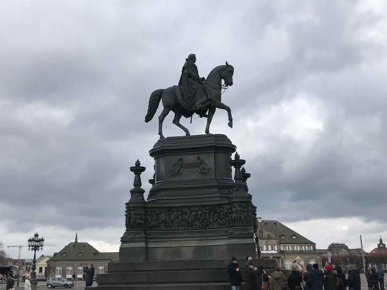 ゼンパーオーパーの前に広がる劇場広場にこのヨハン王の銅像があります。3段の土台の上にある高さ約 6 メートルの騎馬像です。馬が歩いている姿で、そのまま動き出しそうな躍動感があります。1945 年の空襲を逃れて、破壊されることなく生き残ったそうです。
