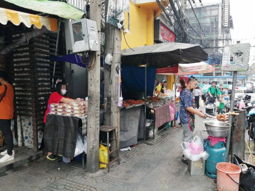 コロナ禍の影響でどうなってしまったのかと思っていましたが何事もなかったのように営業をしていました。道の脇で揚げ物をしている光景を見てタイに来たなーと実感し嬉しくなりました。今回は目玉焼きをのせたご飯と揚げ物を買ってホテルで食べました。合わせて100バーツでした。