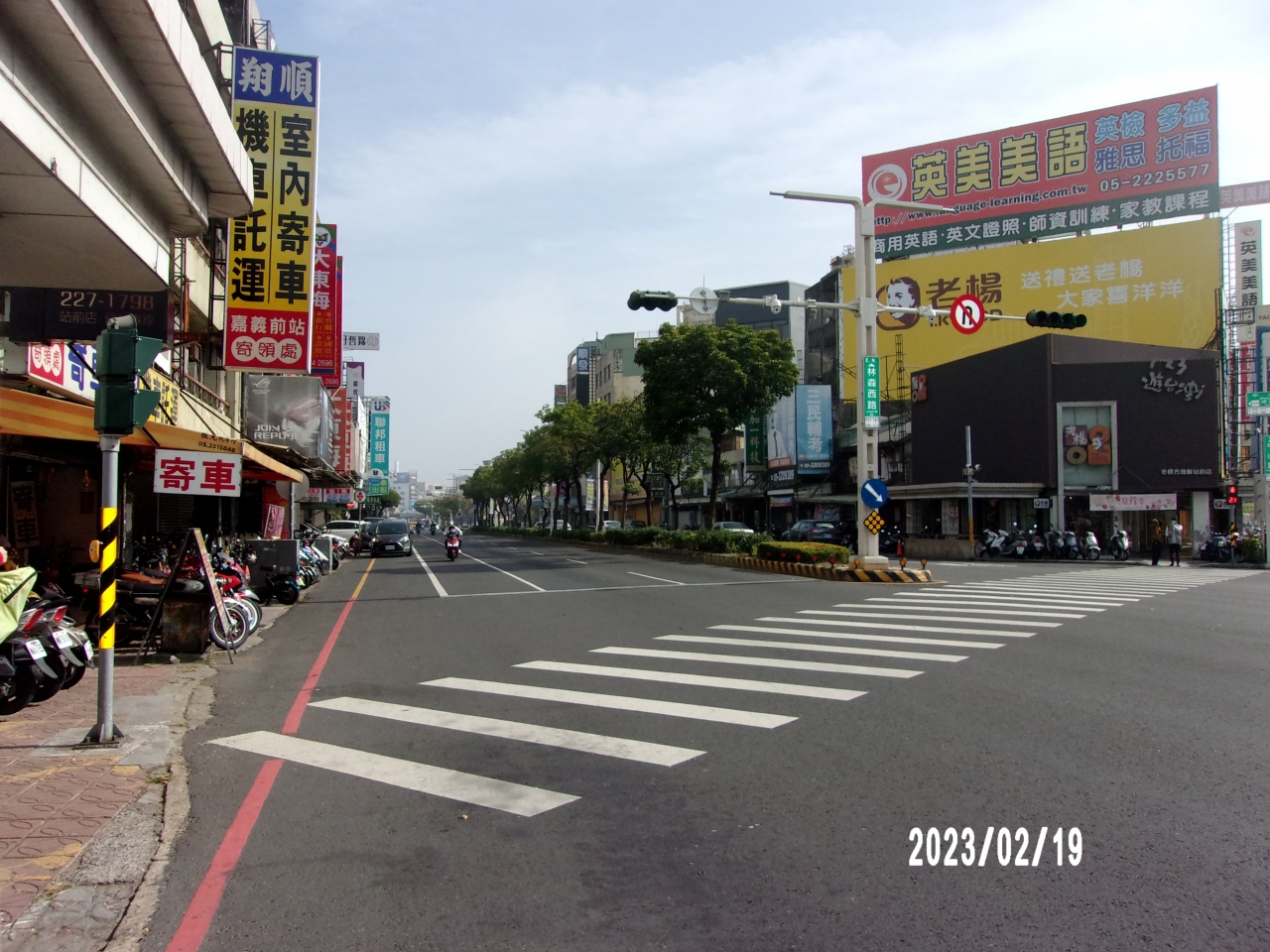 この林森西路は台鉄嘉義駅から北に延びる大通りです。この通りに沿って観光名所がいくつかあります。通りは幅が広く交通量は多いです。中央には安全島があります。この通りはさらに林森東路とつながります。そのあたりは檜意森活村で日本の住宅をを活用して観光の場所もあります。