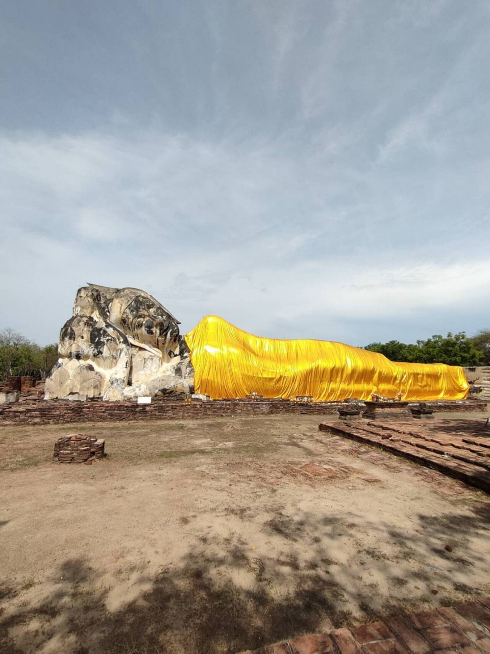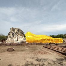 長さも28メートルと、かなりの長さでした。古都アユタヤにありますが、ビルマ軍の攻撃によって壊されてしまいましたが、つくりかえられました。オレンジの袈裟が特徴的だなと思います。おだやかな表情が癒やされました。