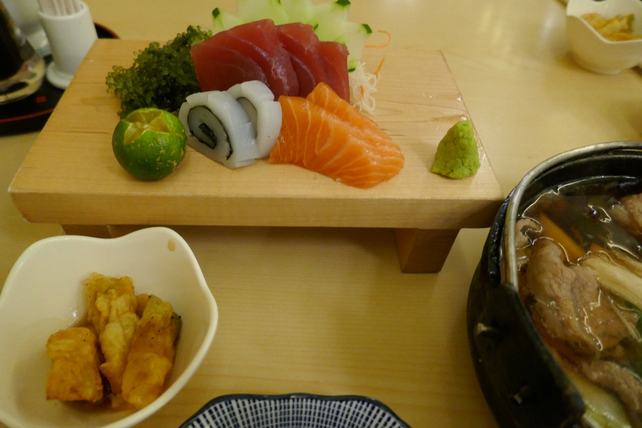 ツアー最終日の夕食で、すき焼きと握り寿司が出て来て驚きました。