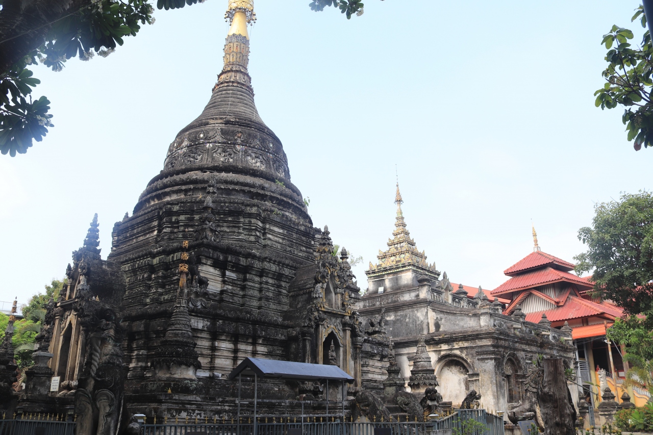 チェンマイ、旧市街の北側、お堀の外にある寺院です。チャーンプアク門からもすぐでした。境内の大きな黒い仏塔が目立ちます。本堂はシャン様式です。旧市街からはちょっと離れているので、訪れる人もみかけませんでした。