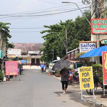 アユタヤ観光は比較的平坦なので、レンタサイクルが便利です。自転車に乗れば、灼熱の暑さにもちょっとは耐えられそうです。駅前に数軒、並んでいますが、市内中心部との間には川があるので、渡船で渡ってから借りるのかお勧めです。