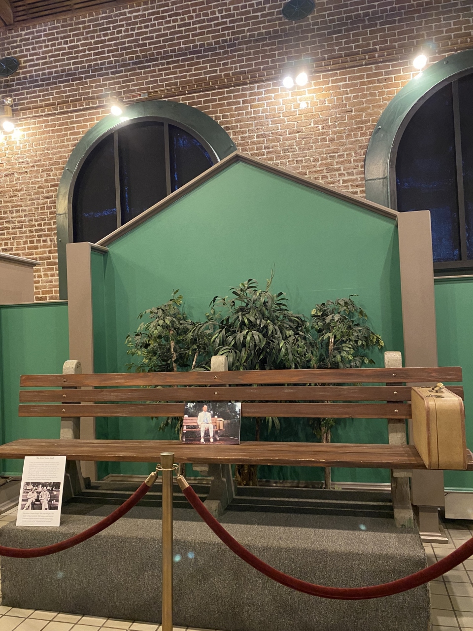 「フォレスト・ガンプ」の冒頭のシーンで主人公が座っていたベンチの複製が展示されています
