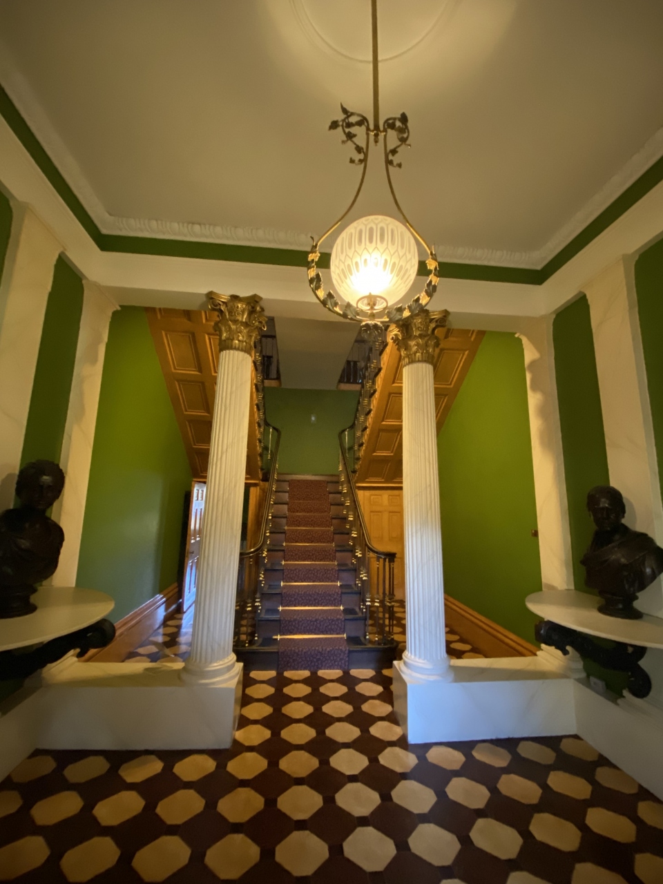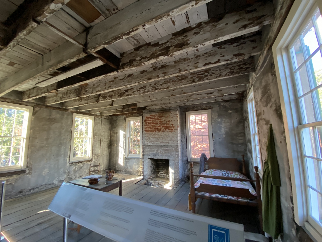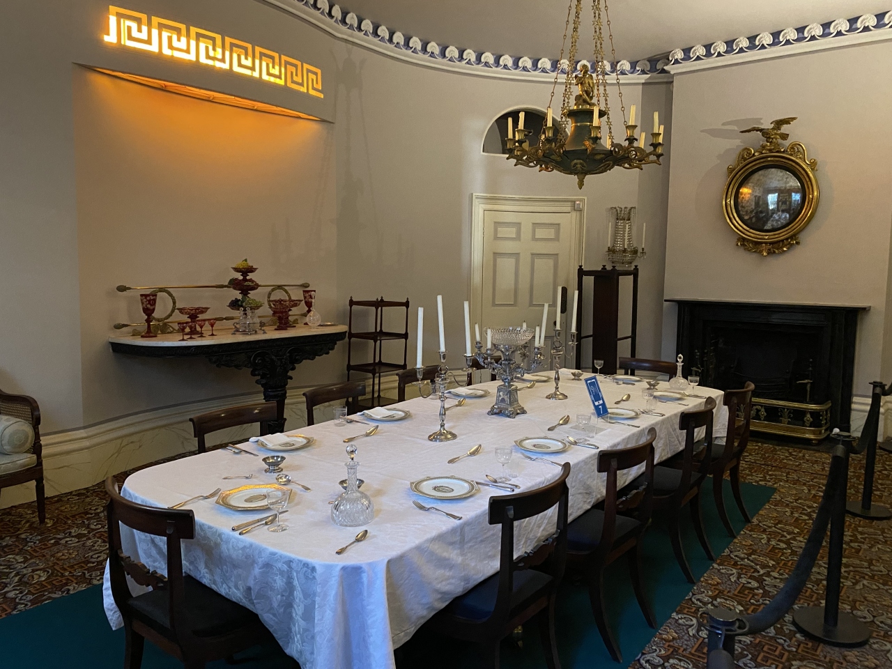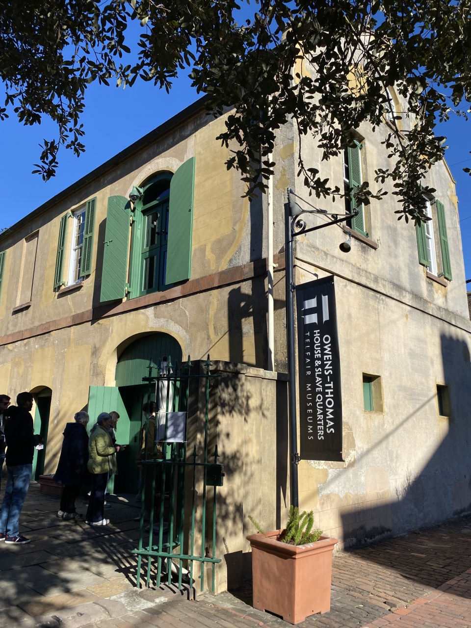 ガイド付きツアーはチケットを持っていても現地でチェックインが必要です。先着順ですぐに満員になるので、確実に訪れたければお早めに。1819年に建てられたこの邸宅は、先のテルフェア邸宅と同様の新古典主義様式。当時の金持ちは皆この流行りを取り入れたらしい。ガイドツアーが始まり。まず建物の北半分のスレーブ・クオーター(奴隷の居住区)に入ります。2階建てで階ごとに3つの部屋があり、十数人の奴隷が住みこみで働いていました。メインハウスは海運商人のリチャード・リチャードソンが1819年に建て住んでいた家だそうです。1830年に弁護士のジョージ・ウェルシュマン・オーウェンズという人が購入し、その後オーウェンズ家が所有し続けて最後の子孫であるマーガレット・グレイ・トーマスが亡くなった際にテルフェア・アカデミーに遺贈されたそうです。家具や装飾品は、主に19世紀初頭から中期にかけてのもので、ほとんどはイギリスかアメリカで生産されたものらしい。当時の豪商と奴隷の関係の縮図を垣間見ることができます。