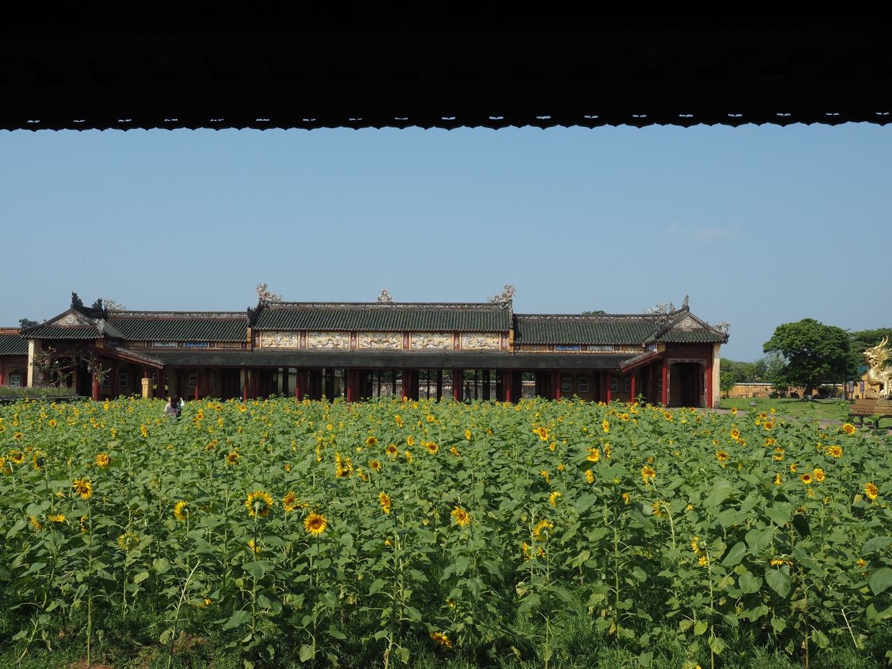 フエの王宮は紫禁城を模して造られているそうです。本家本元の紫禁城に行ったことがないのでどれくらい似通っているのかはわかりませんが、赤い柱が連なる回廊がぐるりとめぐらされているあたりなどに中華風の趣を感じます。