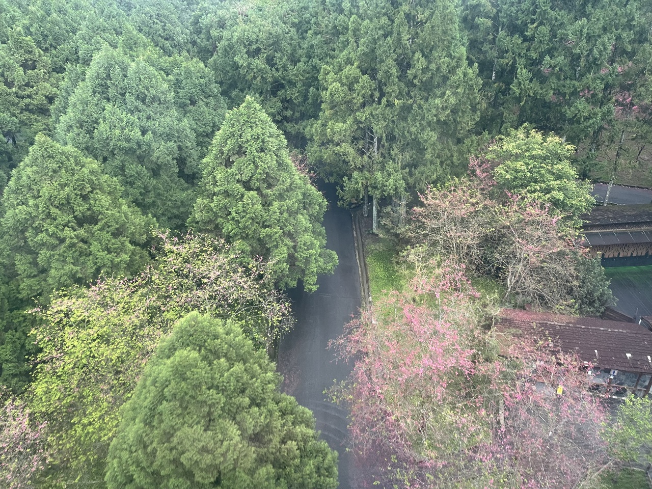 昼間は、ものすごくガラス窓の車両が蒸し暑そうだったので、15時半頃に利用しました。やはり、もやがかかっていましたが、それでも足元に見える景色は緑の木々と湖で桜も上から眺めることができました。窓は少しあいていました