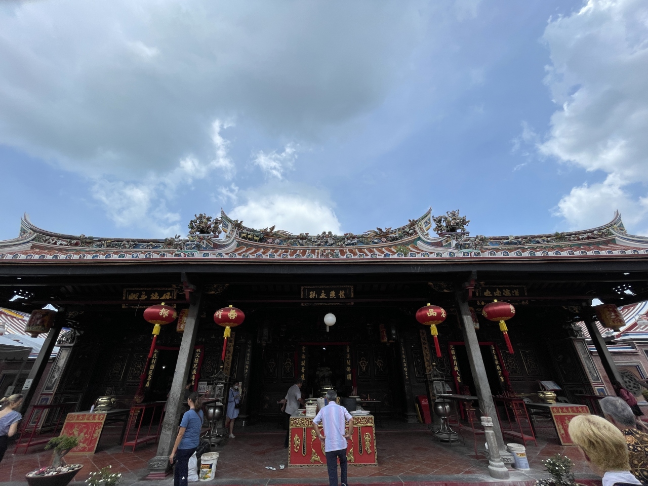 寺院に向かう道は、夜になると屋台が出てとてもにぎわうそうです。寺院も人気の場所のようで沢山の人が途切れずに参拝に来ていました。本堂には3体仏様がいらっしゃいますが、ご本尊は真ん中の観音菩薩様です。裏の方にも安産の神様など色々な仏様がいらっしゃいました。