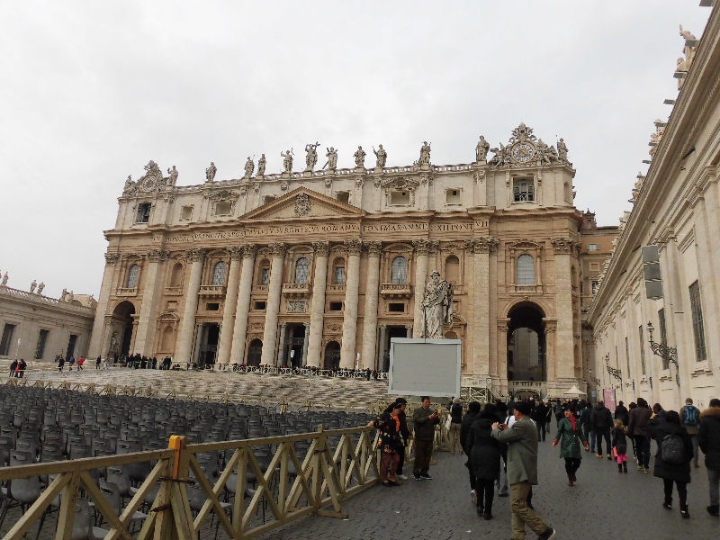 サンピエトロ大聖堂には5つの扉が在りますが、いつもは閉ざされています。所持品検査で並んで、やっと入館できましたが、扉は行事に依って開けらるそうです。私達はクリスマスシーズンに入館しましたが、この時は真ん中の扉から入りましたが扉の前も長蛇の列でした。