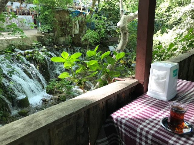 アンタクヤの郊外にあるハビエの滝に行った時に入ったレストランです。ハビエの滝はアンタクヤの中心からバスで1時間ほど行ったところにあります。ハビエの滝は滝というよりもあちこちから水が湧き出てくる感じで、その滝を見ながらここでお茶をしました。夏には滝の水に足を漬けれるようなテーブルもありました。