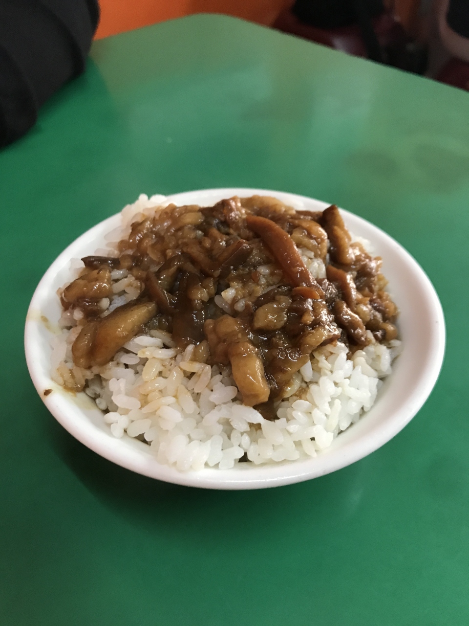 八角を感じないので日本人好みの味かもしれませんが、台湾らしさとしては八角も必要と思いますので、ちょっと物足りない印象です。それでも甘すぎずトロッとした豚肉の脂身が抜群で、さらに汁だくなのが嬉しい。サイズは子どものお茶碗サイズなのですぐに完食しました。残念なのは煮卵を忘れてしまったことです。