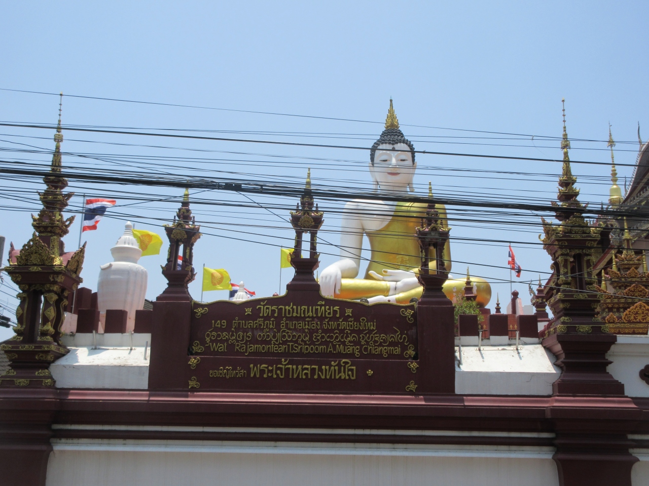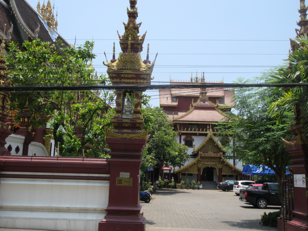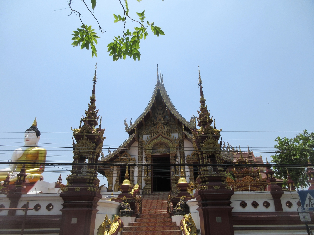 旧市街北側Sri Phum通り沿いにあります。道路からも黄色と白色の大きな仏像が目立っているのでわかりやすいです。入ってみると仏像だけでなく、本堂も意匠をこらし豪華な建築物となっていて、見応えがあります。