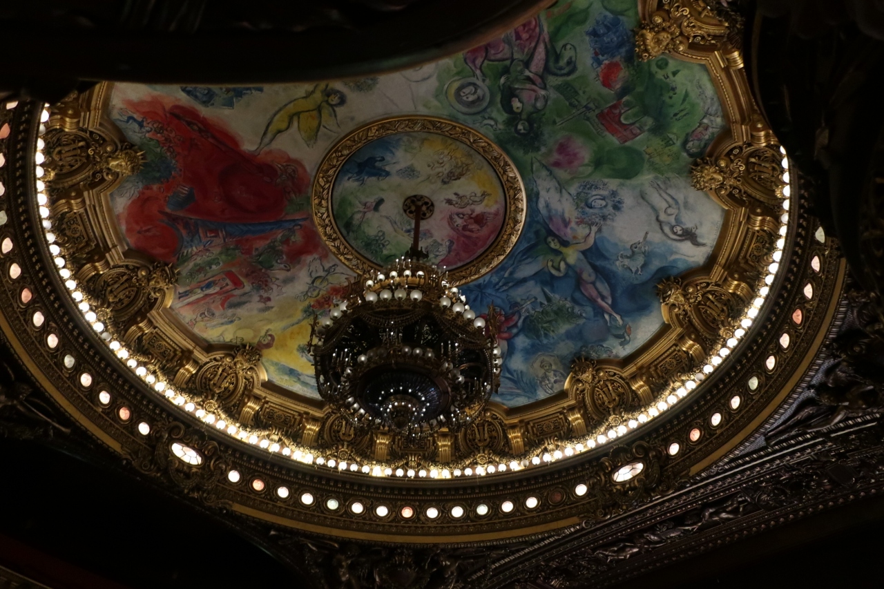 シャガールの天井絵はやはり素晴らしかったです。それ以外にも衣装の展示などもあり、また建物自体も美しいのでとても見どころの多い自由見学ツアーでした。