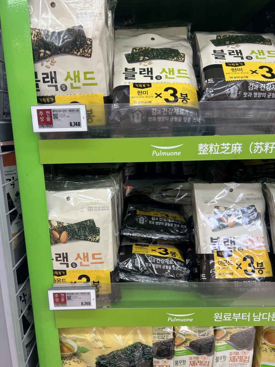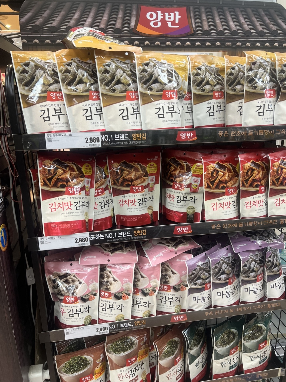 欲しかった海苔のスナック菓子(アーモンドが挟まっている)がE Martになくロッテマートにあり明洞の半額。やられた感あり(笑)