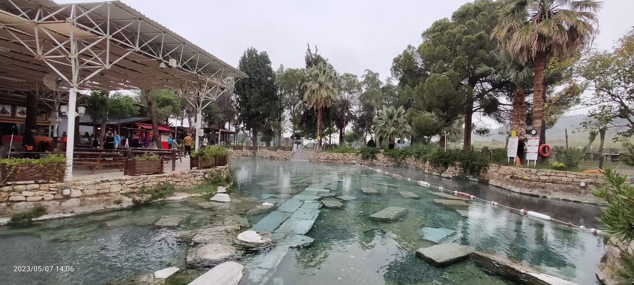 パムッカレの上の方にある駐車場から、石灰棚へ向かう途中右手に見える。ちょっと距離があるので「あれが古い遺跡か・・」との感想。近くまで行けるかは不明。Antique Poolは季節柄か誰もはいっていなかったが、水たまりに遺跡の葉片が沈んでいるように見えた。夢とロマンに溢れたコメントを思いつかず、もっと予備知識を仕入れていけば良かったと悔やまれる。
