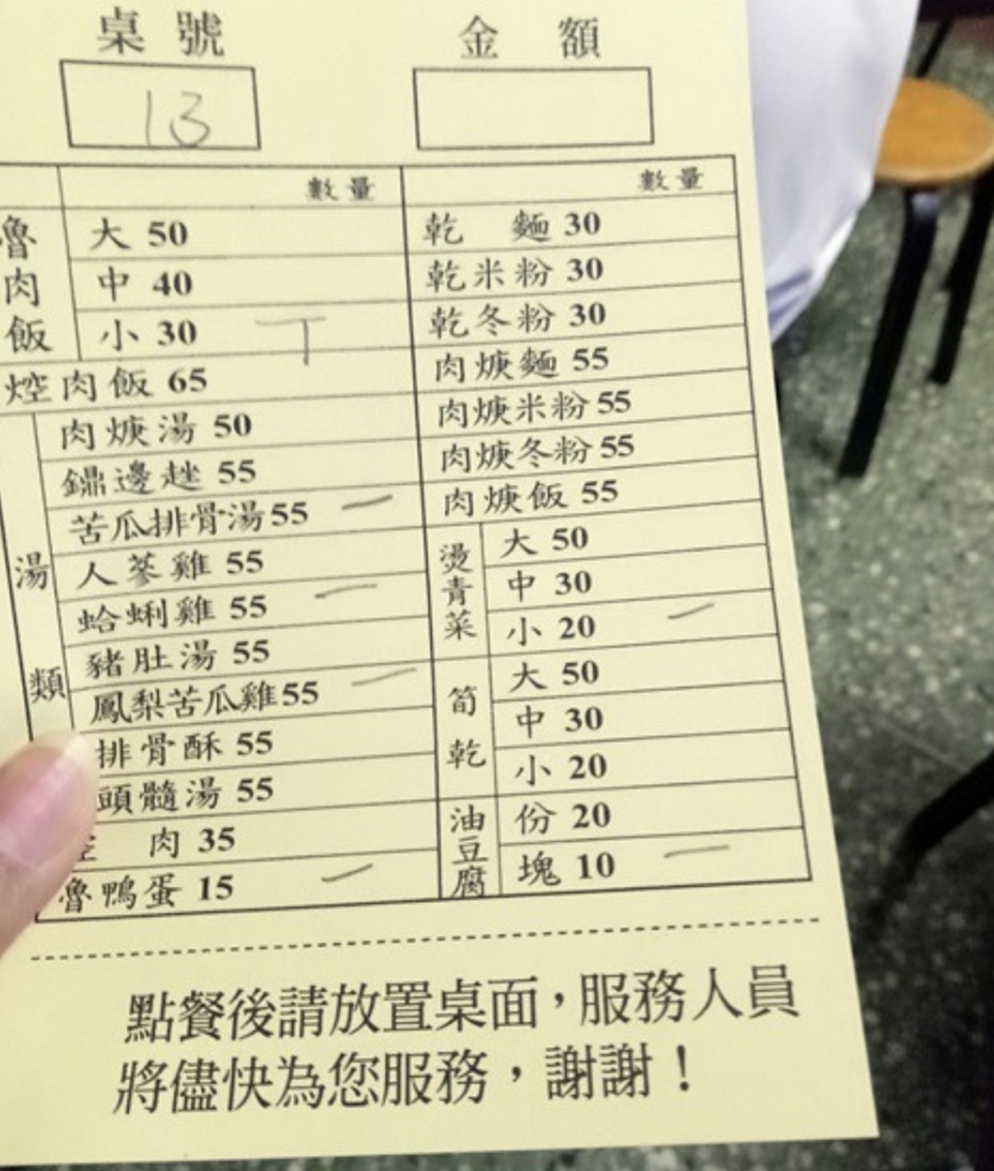 台湾の魯肉飯の提供は安くて早いです。醤油のタレが濃ゆいので、スープか野菜を一緒に注文するのが一般的。男性客には足りないくらいの量かもしれませんが、少し食べて腹を満たさずに別のお店の魯肉飯食べ歩きをするのもいいと思います。
