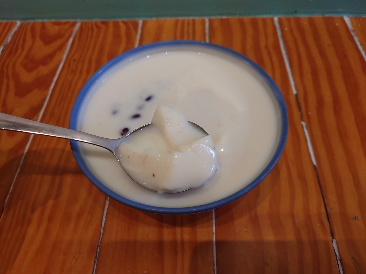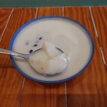 問屋街にある有名な杏仁豆腐のお店です。杏仁豆腐のかき氷なども食べる事が出来ます。こじんまりしてますが、奥にも多少カウンターがあります。味は濃厚ではありませんが、やさしい味です。画像のメニューは小豆入り杏仁豆腐です。