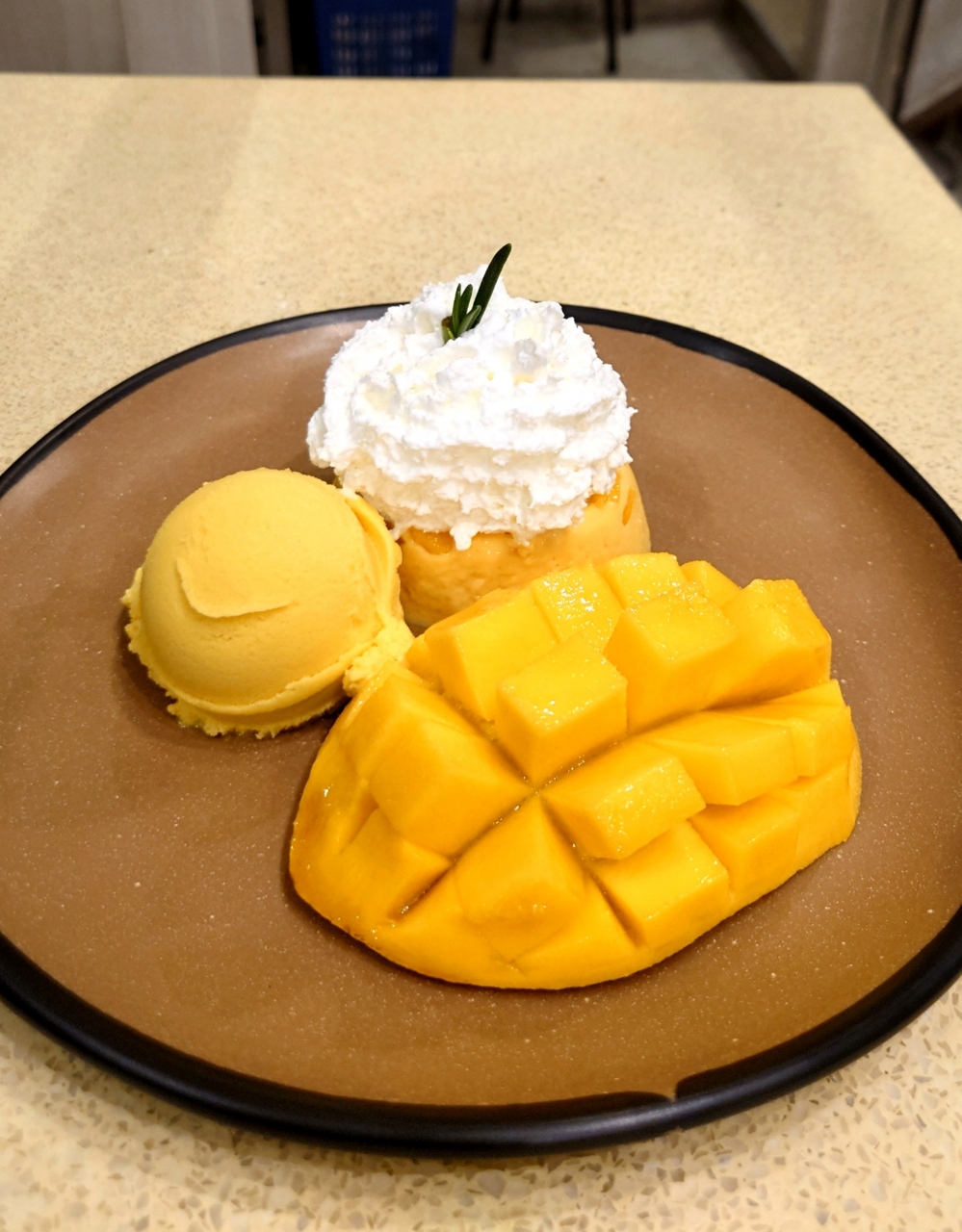 私はフレッシュマンゴー・マンゴーアイス・マンゴープリンの3種盛りにしました。