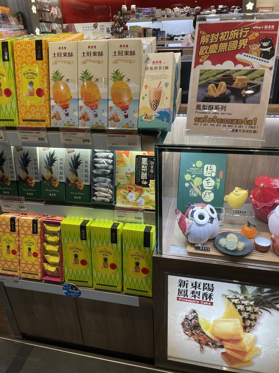 台湾の有名な食品店で、パイナップルケーキやお茶などのお土産を購入することができます。