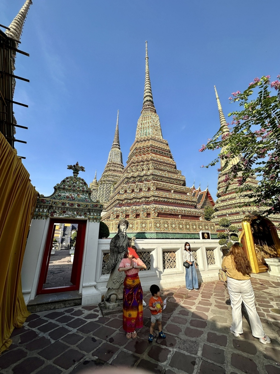 ワットポー入場規定として、男性も女性も膝上が見えない洋服が必要です。短パンであれば膝が隠れる丈であれば大丈夫のようでした。私は現地で脚を隠す布を購入しました。高くなくあとにお土産にもなるので現地調達でもいいと思います。