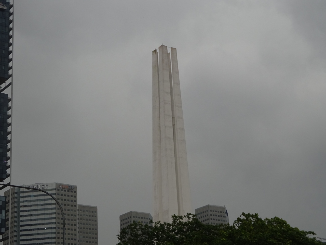 シンガポールの戦争記念公園です。緑が多い広々とした公園ですが、白いモニュメントが建っています。昼間はもちろん、夜も白く光っていて、かなりの存在感があります。このモニュメントが目に入ると、厳かな気持ちになります。