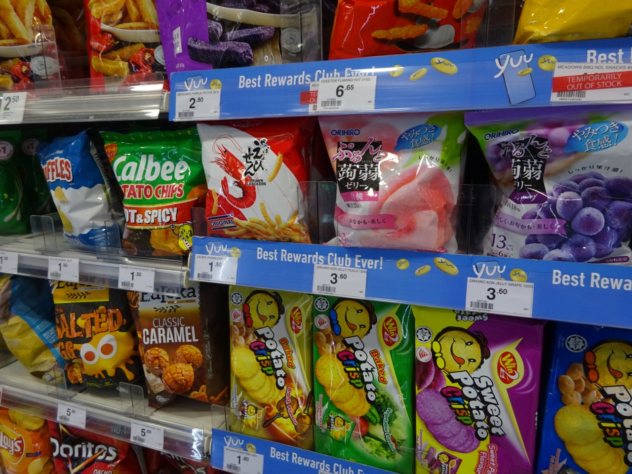 シンガポールのセブンイレブン (シンガポール フライヤー店) です。日本と変わらないですが、日本よりも狭めなかんじもします。いろいろとあって、だいぶ日本よりかは高めですが、日本語でラベルがついたお茶なんかもあります。