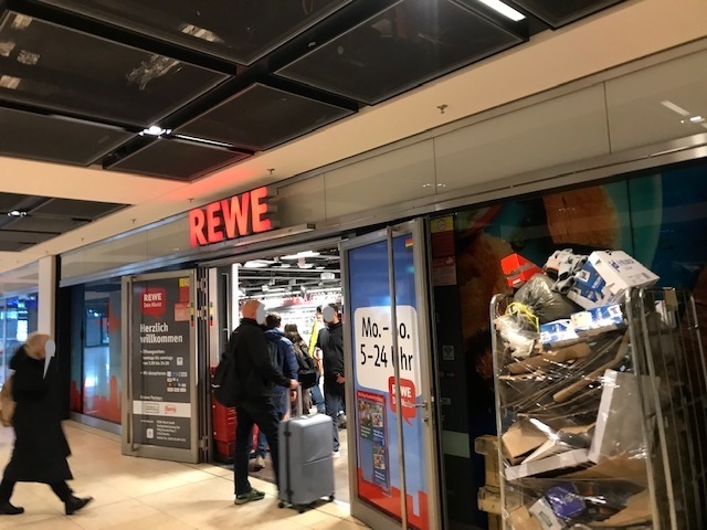 ベルリン空港の中にあるスーパーマーケットです。到着階からドイツ国鉄の乗り場の方へ1階降り、外へ出る扉の向こうにあります。ドレスデンへICで移動するまで、時間があったので、ここで飲み物やパンなどを購入しました。とても便利でした。