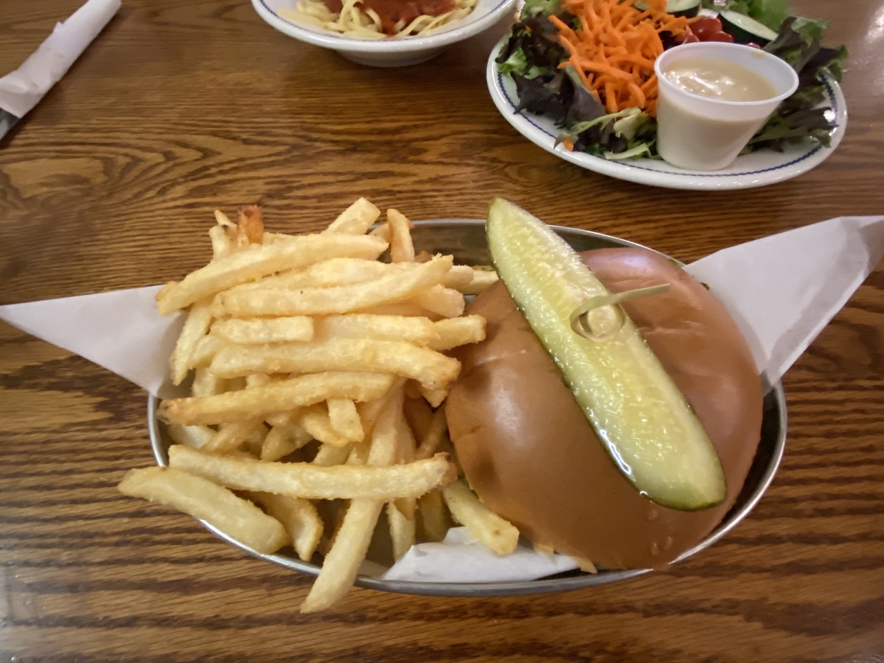 ブライトエンジェルロッジにあるレストランの一つです。ロッジにはこのレストランとステーキハウスがあります。もう一つサンドイッチなどが買える持ち帰り専用の売店が峡谷側にあります。メニューは普通のアメリカ料理だと思います。入り口での受付の時に電話番号を聞かれて席が準備できるとテキストが来ます。ハンバーガーを注文したところ、バンズは少しパサついていて食べるとポロポロと崩れおちてきましたが中身は美味しかったです。