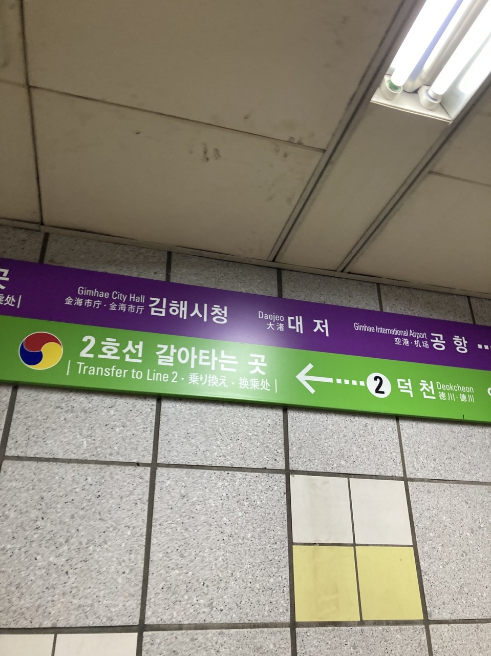 釜山の空港、金海国際空港から鉄道で釜山市街まで行くのに、金海軽電鉄→地下鉄の乗換が沙上駅になります。