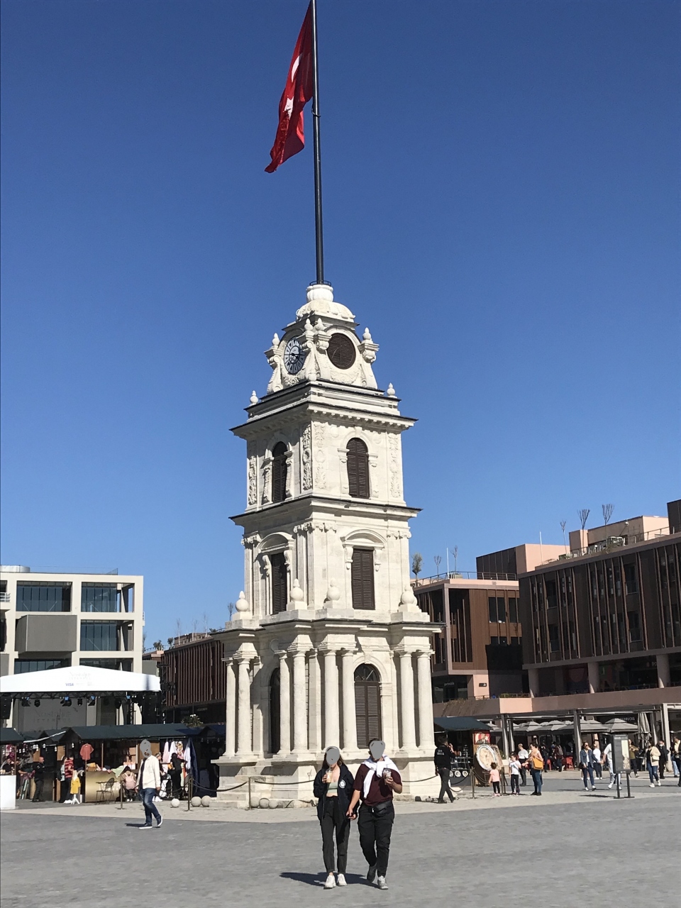 アヤソフィアやトプカプ宮殿などがあるイスタンブールの歴史地区の観光を終え、ホテルがあるタクシム広場に向けてトラムに乗っていると、賑やかな公園があったので途中下車して見ました。ガラタ港という港の近くです。このトフェーネ時計塔はイスタンブールに現存する時計塔としては最古のものの 1 つだそうで、時計部分を含めて4階建てのテーパー構造となっています。少し傾いて立っていて、ピザの社頭のようです。
