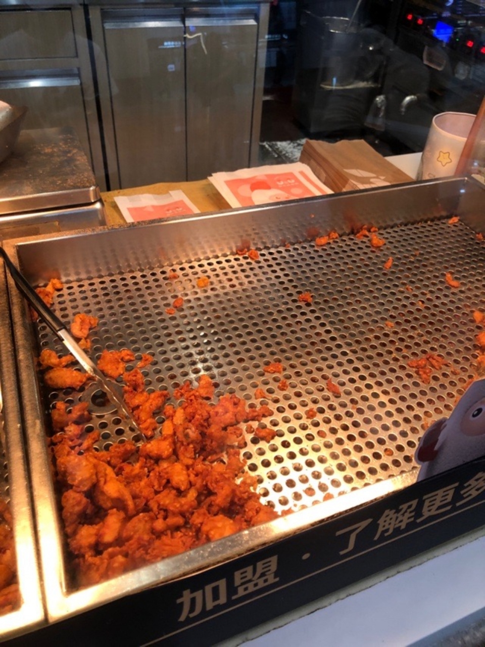 台湾の揚げ物のチェーンのお店です。頂呱呱も好きですが、こちらの継光香香鶏は鶏の皮がおいしいです。それと、先に言わないと結構唐辛子パウダーみたいな辛いのをふりかけられてしまうので、辛いのはダメだと注文時に言いました。