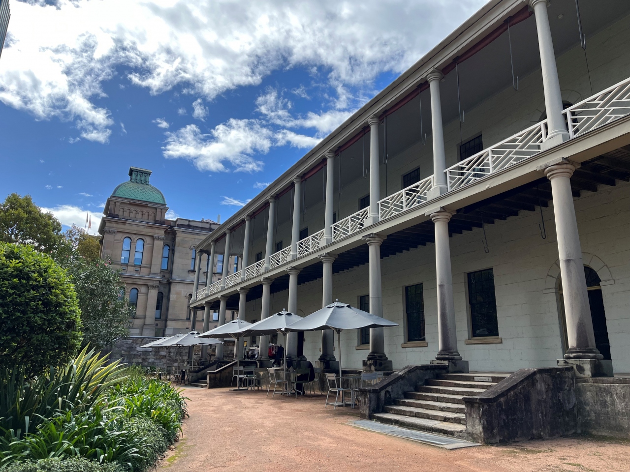 ハイドパークバラックスの隣りです。1816年に建てられた旧造幣局で、オーストラリア最古級の建物だそうです。立ち並ぶ列柱が美しい建物でした。建物内も自由に見学することができて、展示スペースもありました。1階にはカフェが入っています。