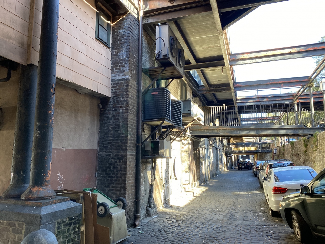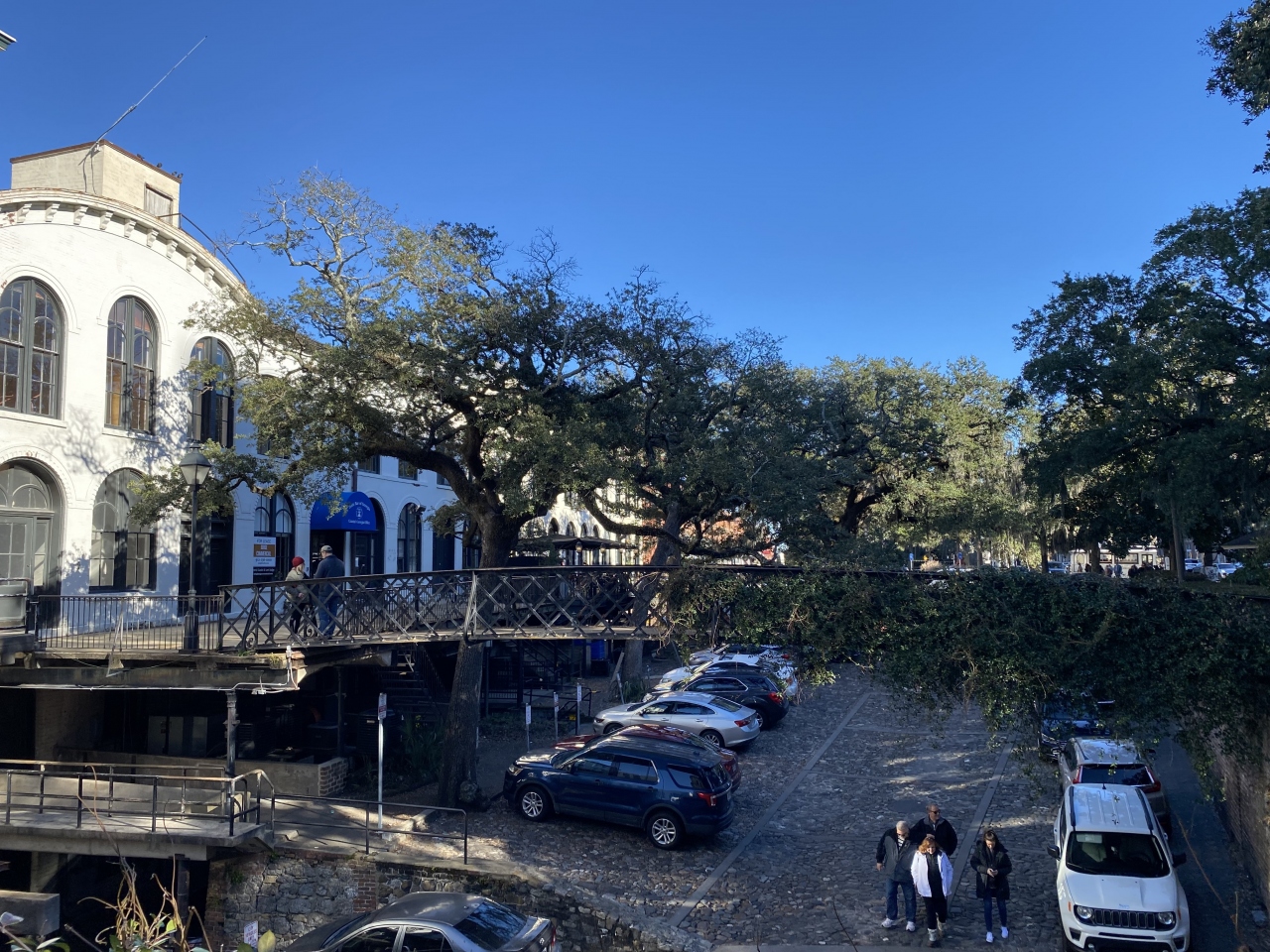 ウォーターフロント地区の周辺に東西に伸びる小路が「ファクターズ・ウォーク」です。アメリカ南部のプランテーションによって栄えた綿花産業、サヴァンナ港にはその綿花の仲介人や卸問屋が軒を連ねていたそうです。この小路の古い倉庫や問屋は当時の繁栄の名残を感じることができます。小路の上に架かる橋は「ラブ・ロック・ブリッジ」、見えにくいですが橋の柵には恋人たちの鍵がたくさん掛っていました。