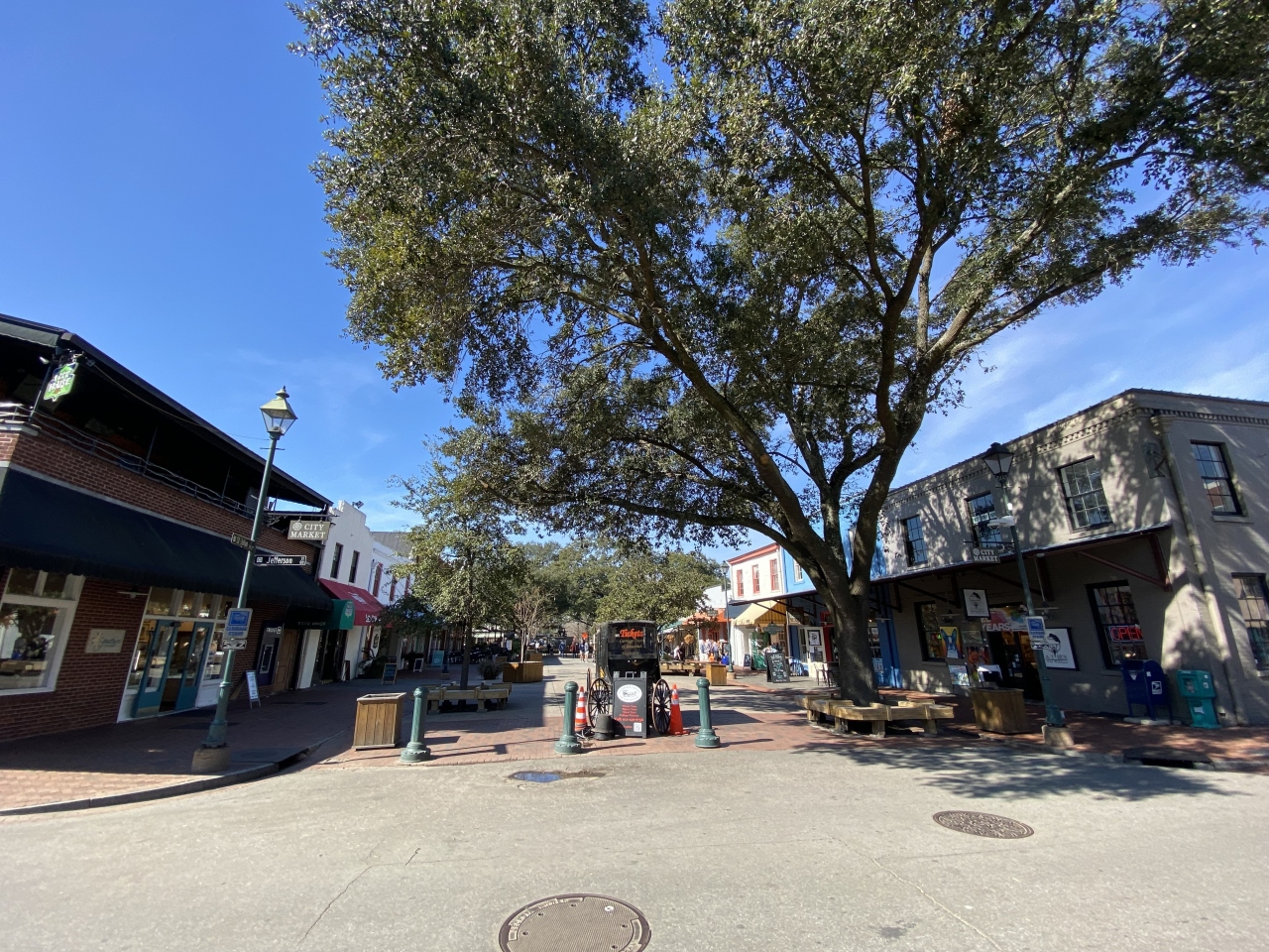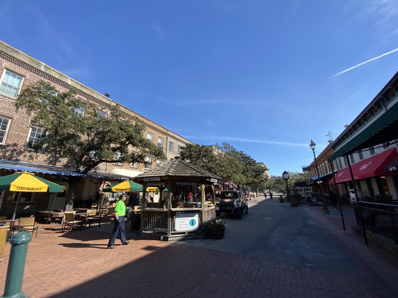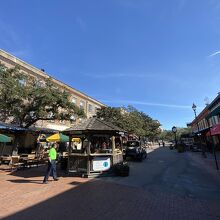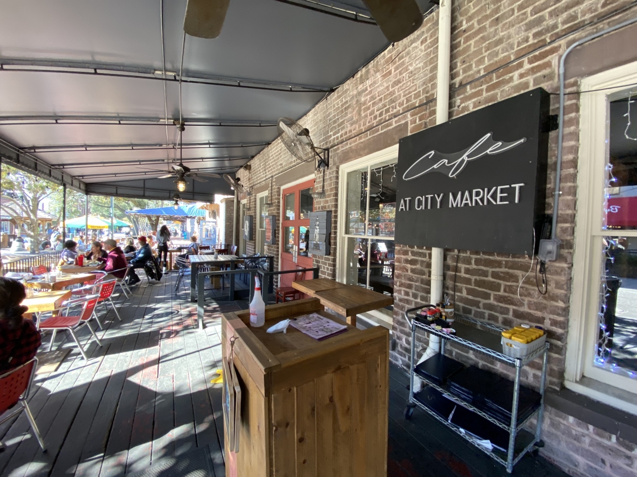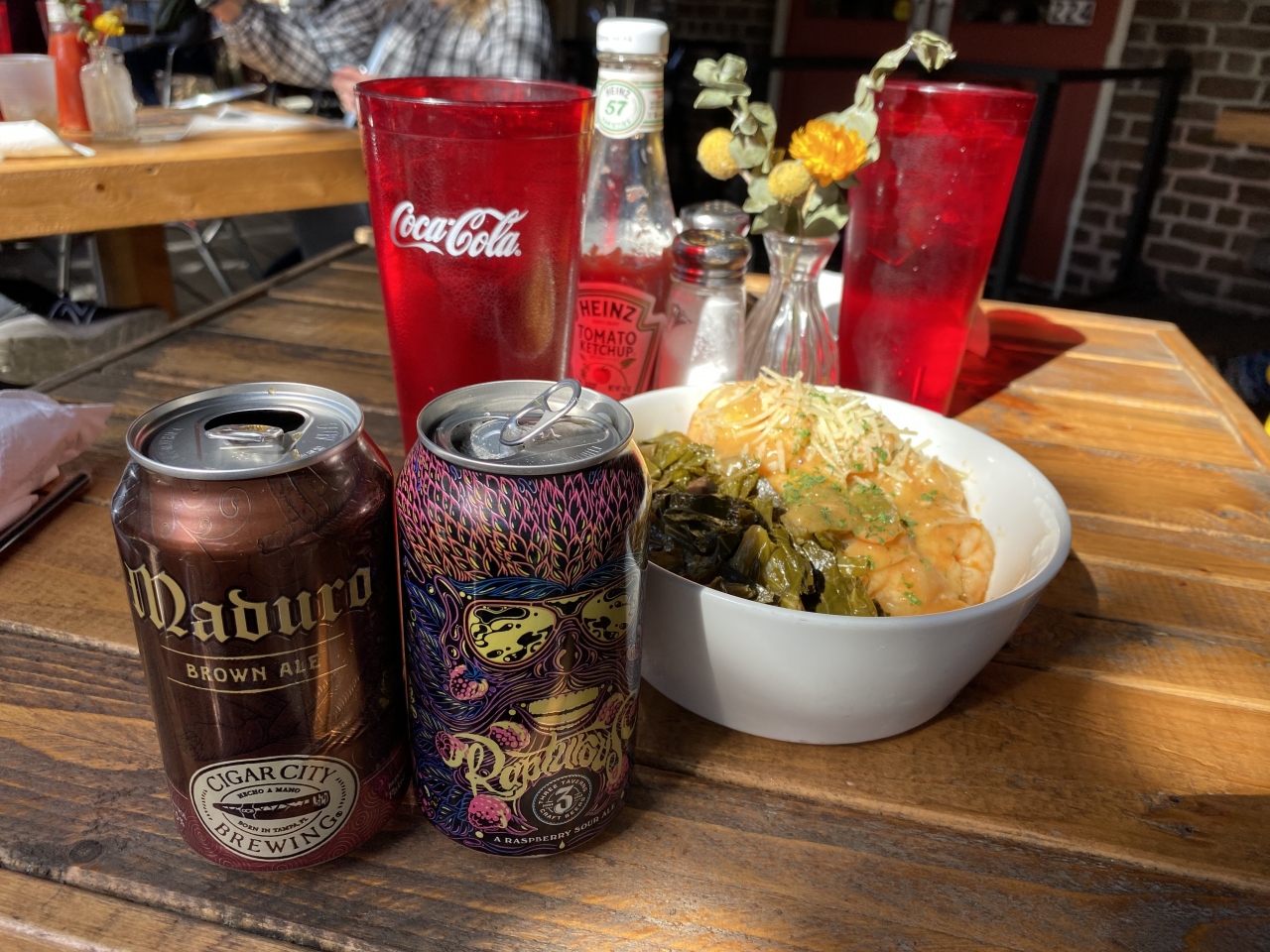 リバーストリートから市街方面に徒歩5分くらいのところにあります。シティ・マーケットには「禁酒法博物館」なるものもあり興味はそそったのですが、ガイドツアーでちょっとお高かったのでパスしました。「カフェ・アット・シティ・マーケット」という、そのまんまの名前の店で軽くランチしました。クラフト・ビールと、アメリカ南部料理の「シュリンプ・グリッツ」をいただきました。トウモロコシのお粥のようなグリッツに、スパイスをきかせて炒めたエビを絡めたものです。同じく南部のつけ合わせであるコラードグリーンの煮物が添えられていました。そう広くないエリアですが、雰囲気の良い店が並んでますのでお土産屋や軽食休憩におススメです。