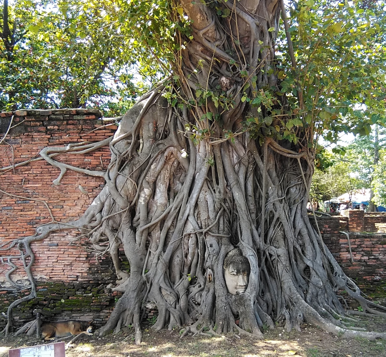 ワット マハータートはアユタヤの旧市街地にあり、もっとも有名な寺院です。見どころはなんといっても菩提樹の根に取り込まれてしまった仏像の頭です。仏様に失礼がないように、座って記念撮影させて頂きました。アユタヤ王朝が14世紀に建てた仏教寺院だそうです。