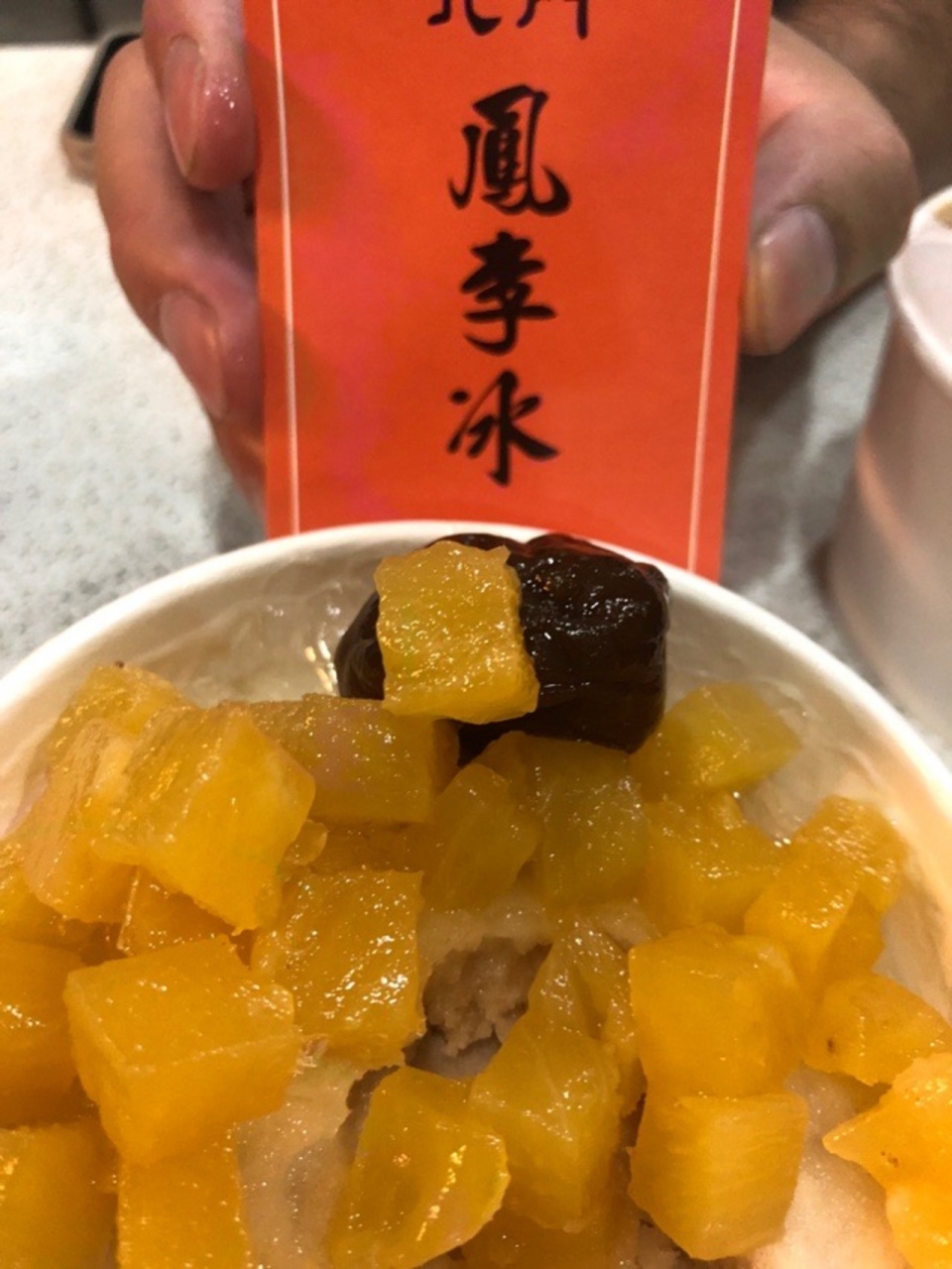 台湾の昔ながらの味が食べれたらいいなと思って、看板だけ見てパイナップルを食べたくて、やってきました。カウンターで注文して、その場で紙製の容器に入れてもらえるので、それを受け取って自分で空いてる席で食べるというシステムでした