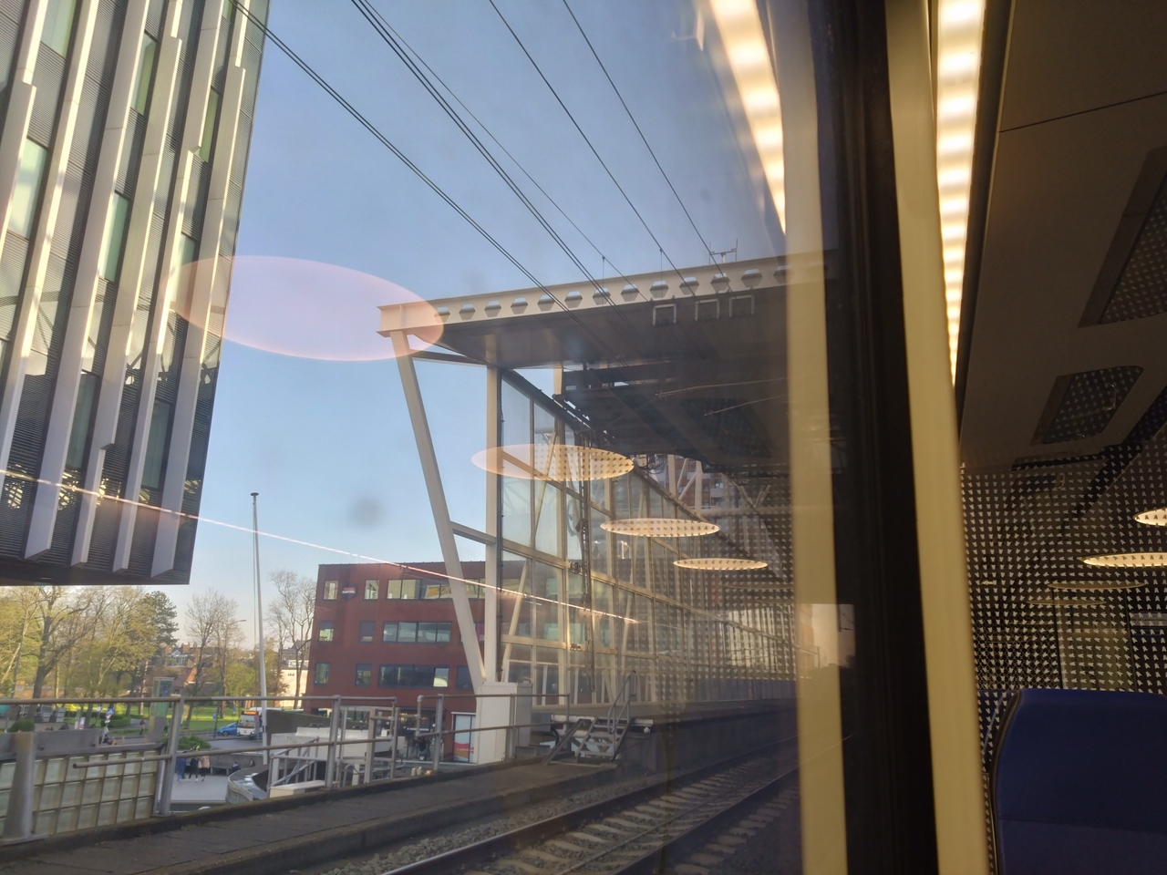 街自体はクラシックで運河の美しい風景がありますが、駅の外観は超近代的。現代建築のような雰囲気でした。白の直線的なデザインです。こういう近代的な駅もオランダにはあるのかと意外でした。駅構内のお店は、チェーン店が多いです。