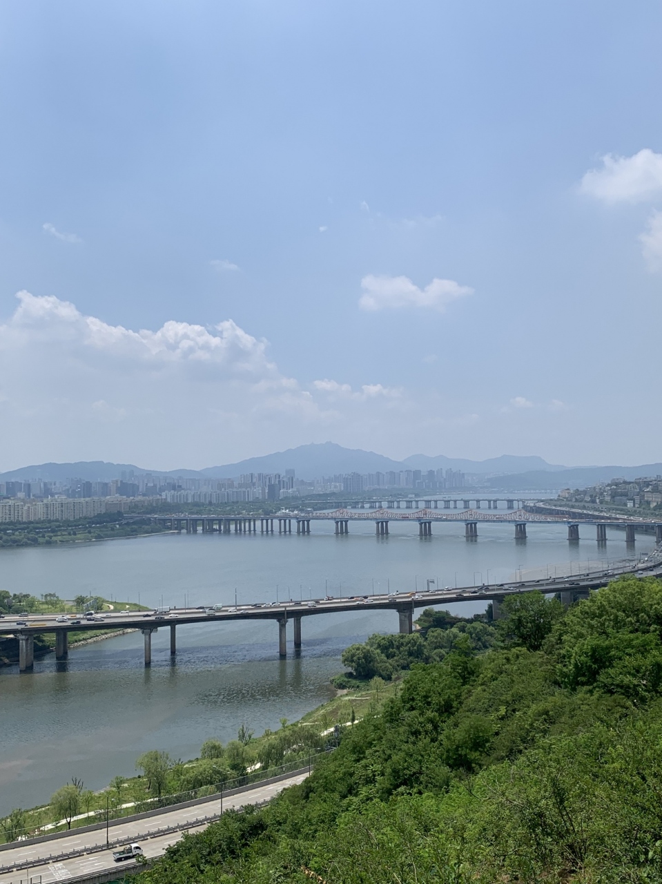 鷹峰山駅からは遠そうなので路線バスで行きました。ウンボンドンヒョンデアパートの停留所で降りれば山へアクセスする整備された階段がすぐです。そこからでも階段と坂道があり行きはヘロヘロ帰りは比較的楽でした。八角亭からの眺めは見事で登ってきたかいがありました。夜景も超綺麗だそうです。