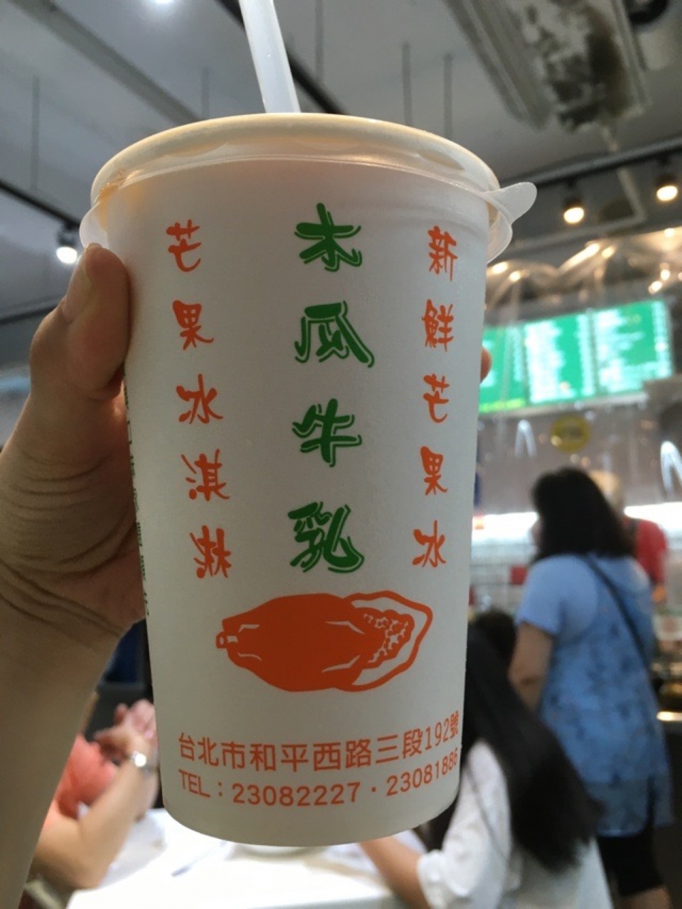 パパイヤ牛乳が有名で、他にもバナナ牛乳、アボカド牛乳、スイカ牛乳、パイナップル牛乳などジュースの種類は多かったです。夜市があって、にぎわっている場所からは大通りを1本渡らないといけませんが、人で人気でした。