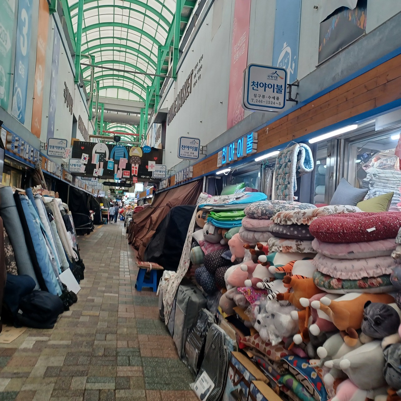 富平観光市場は飲食店が多いですが、こちらは調理器具、布団やタオル、衣類、文具等が多かったです。