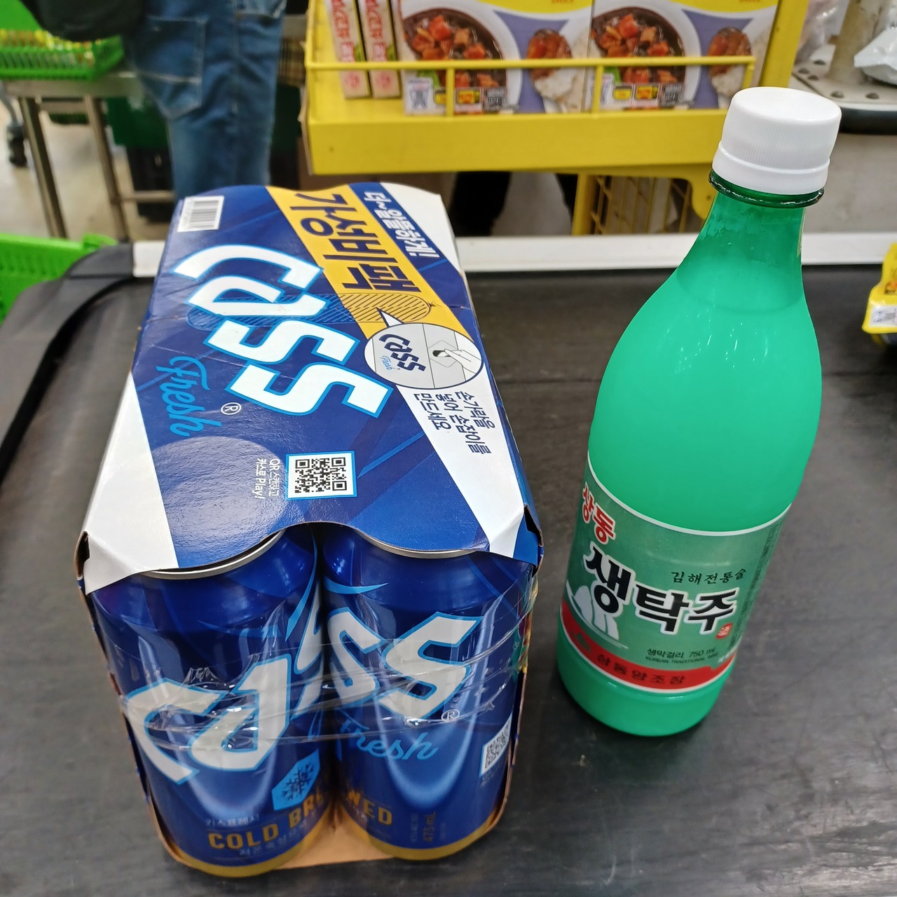 2階にお菓子、飲料等があり、マッコリ1500ウォンとビール8本を11900ウォンで買いました。クレジットカード使えます。