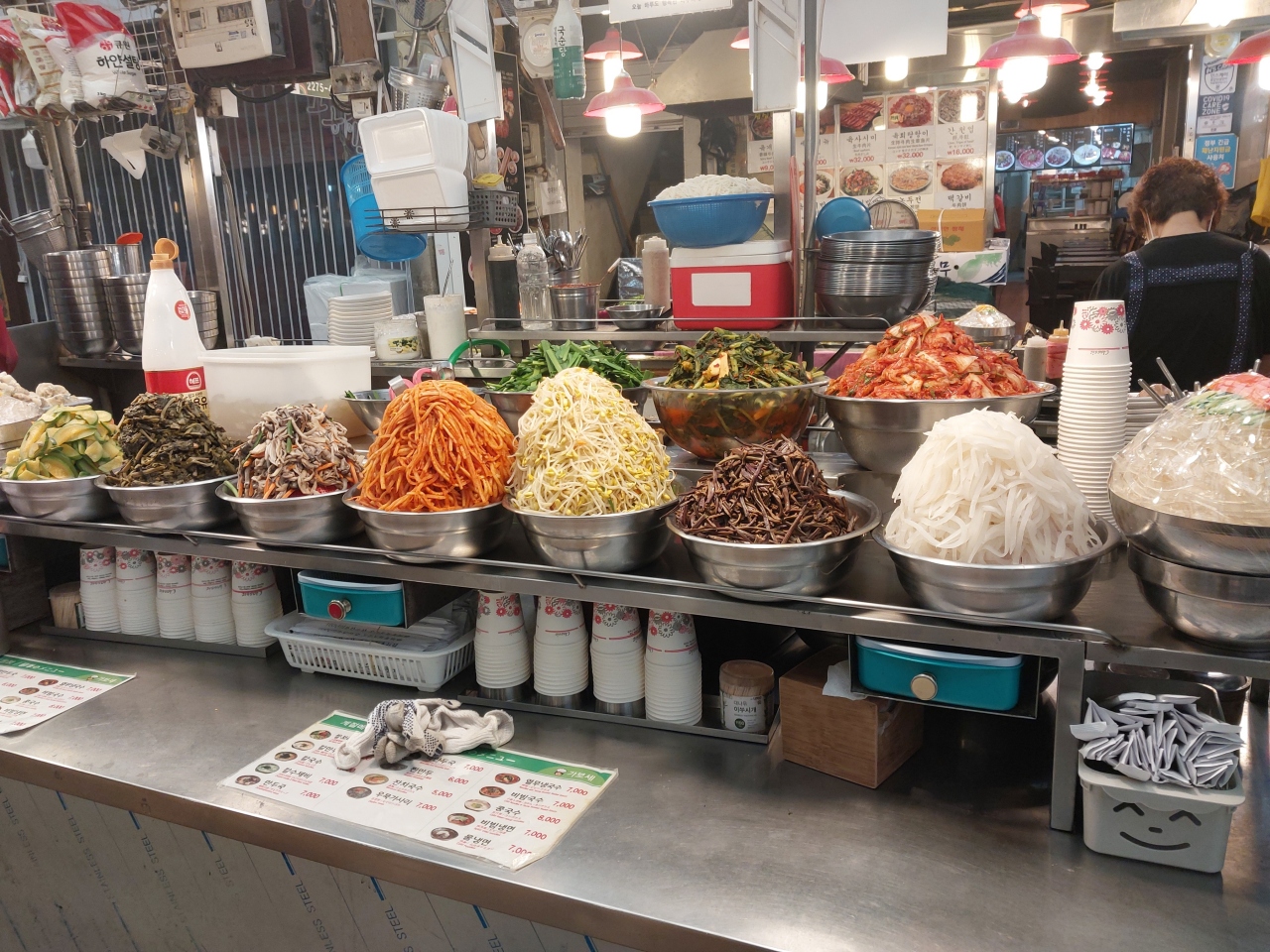 土日はものすごく混むので、平日に行った方がいいです。広蔵市場に平日に行くために、わざわざ韓国旅行を平日にするくらいの価値はあります。前回は日曜の昼に行き、今回は木曜の午前中に行きましたが、全然雰囲気が違います。平日の方がゆっくり見て回れるし、人の量が全然少ないです。それでも人気のクァベギのお店は大行列でしたが、絶対に平日に行った方がいいです。ノースフェイスのアウトレットもゆっくり見ることができて、試着も可能でした。