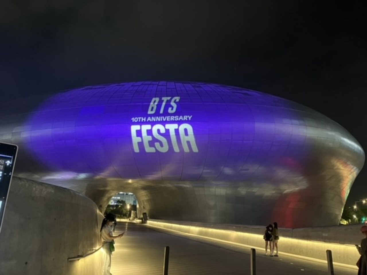 BTSの10周年記念でライトアップとロゴ投影が期間限定でされていたので、これを見るために東大門に行った来ました!DDP自体は大きいのですぐわかりましたが、イベント箇所がわからなくてぐるっと一周しました!たくさんのARMYがいて嬉しかったです!