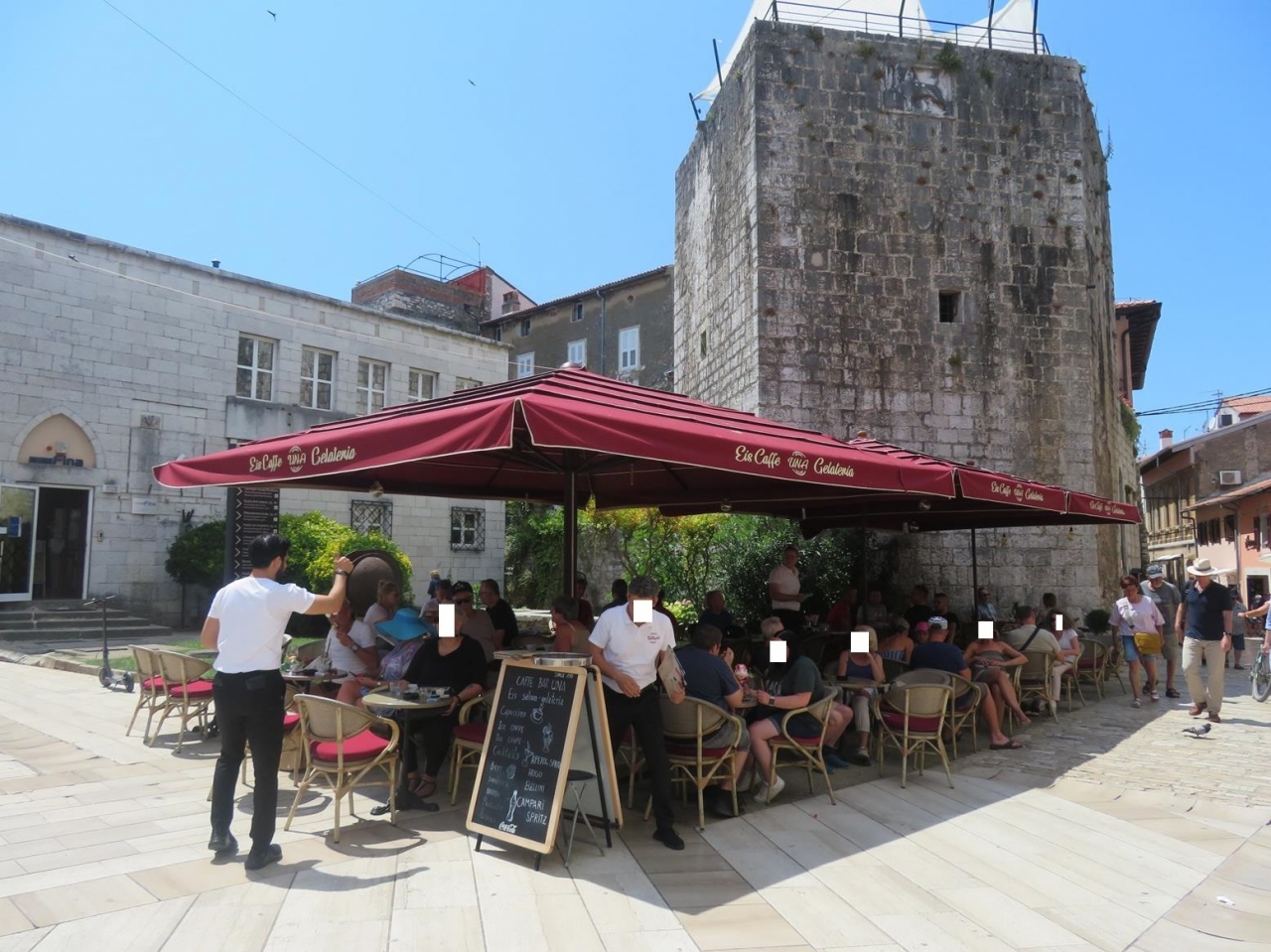 Caffe Bar "Una"もその内の一軒ですが、上記の広場とデクマヌス通りが接する部分にあってすぐに目に留まります。