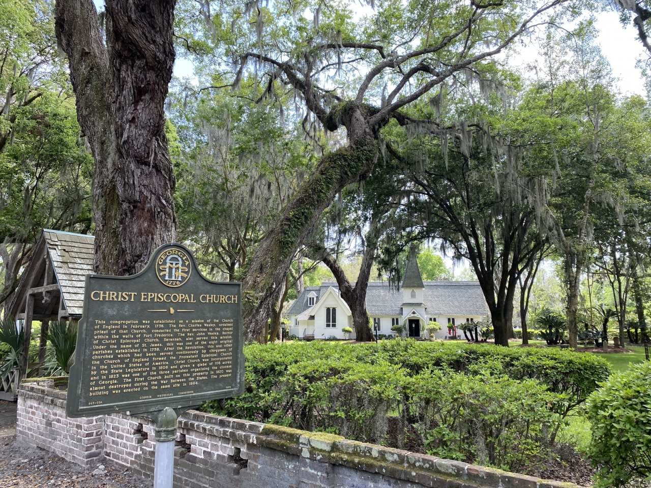 フレデリカ砦のすぐ近くにあります。ジョージア州の古い教会のひとつで、元の建物は南北戦争で破壊されましたが、1884年にアンソン・ダッジによって、インドへのハネムーン中に亡くなった妻エレンへの追悼のために再建されたそうです。入口に座っておられた管理人らしき方に断り中へ。快く迎え入れていただきました。木製のトラス構造の素朴な美しい教会。ステンドグラスがまた素朴で美しい。良い意味でアメリカらしくない教会でした。