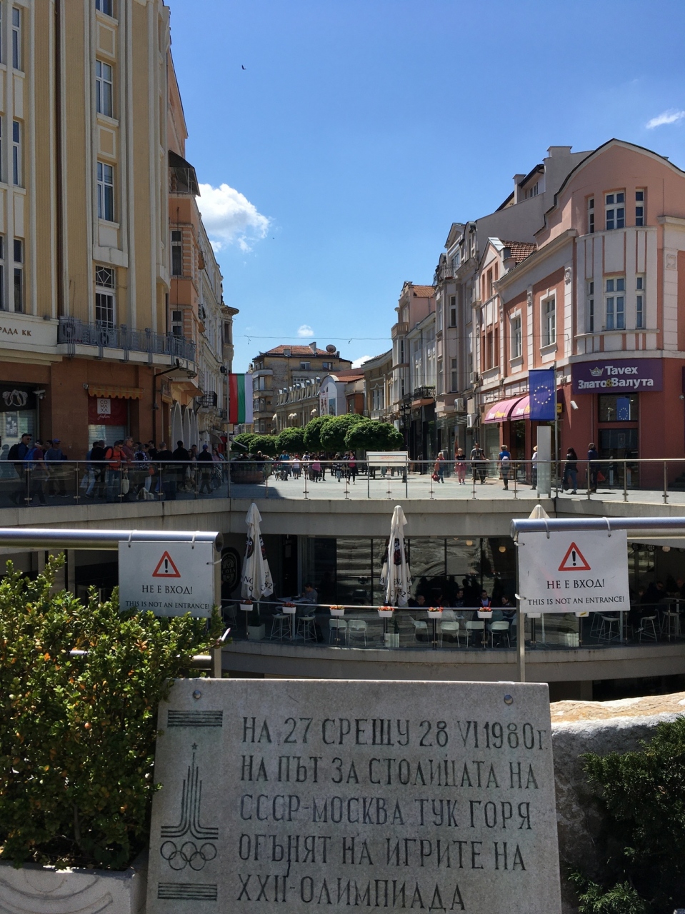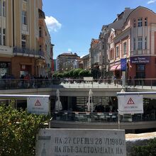 アレキサンドルバテンベルク通りを進んできて左側にあり、ジュマヤジャーミヤと競技場跡がある広場とは呼べないくらいのスペースですがレストランやカフェがあり人で賑わっていました。競技場後は下からと上から、眺められるようになっています。