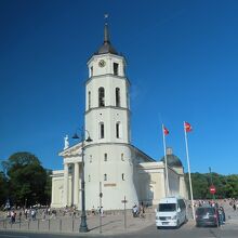 添乗員ツアーにて。ヴィリニュス市街の観光で、大聖堂前でバスを降りました。真っ先に目に入るのはやはりこれ。堂々とした鐘楼で、後ろの大聖堂にぜんぜん負けていません。のぼれるのですが、時間がなくてかないませんでした、次は必ず。