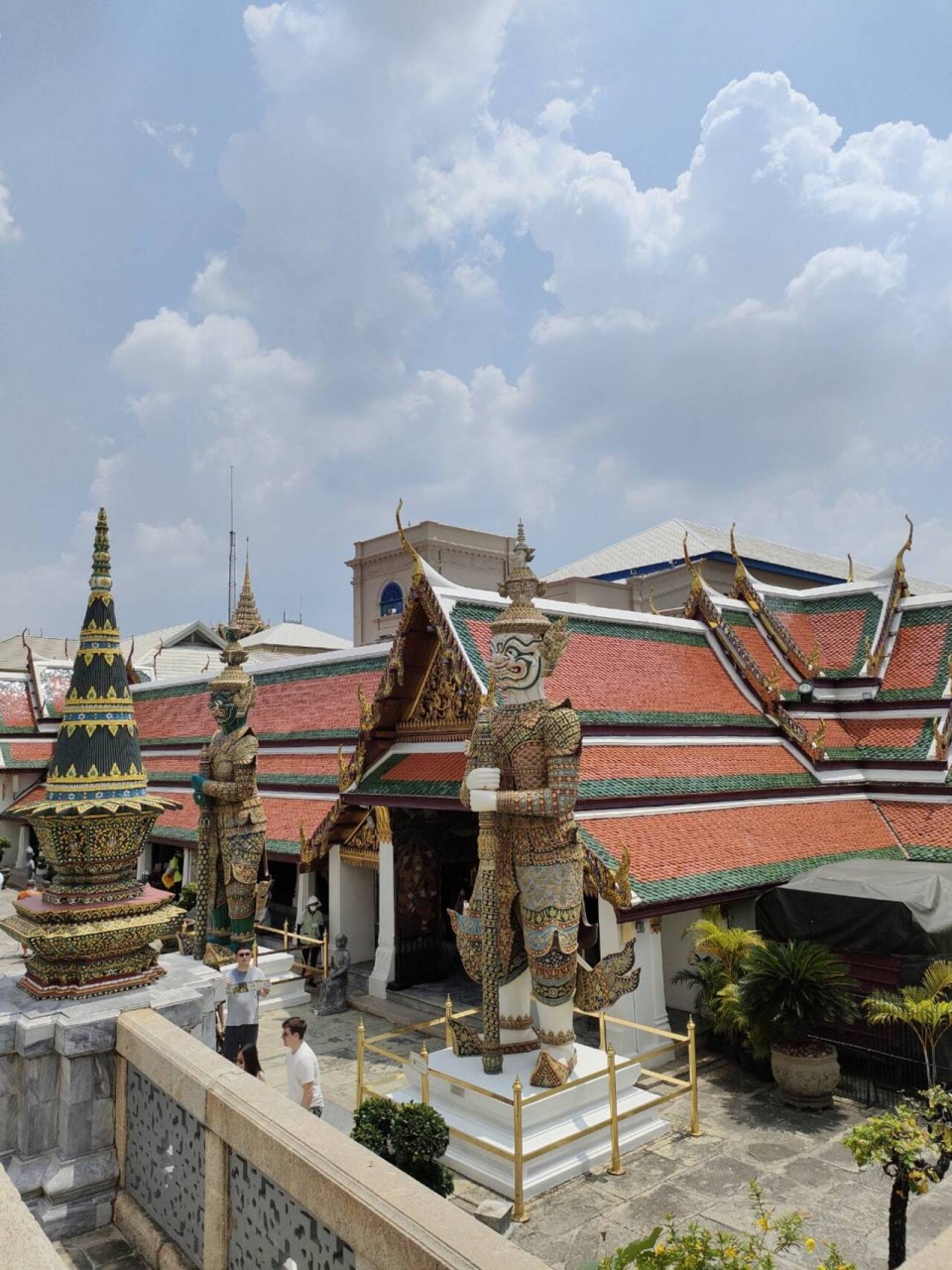けっこう大きな像で、門番のように入口を守っていました。色もいろいろあっておもしろいなと思いました。