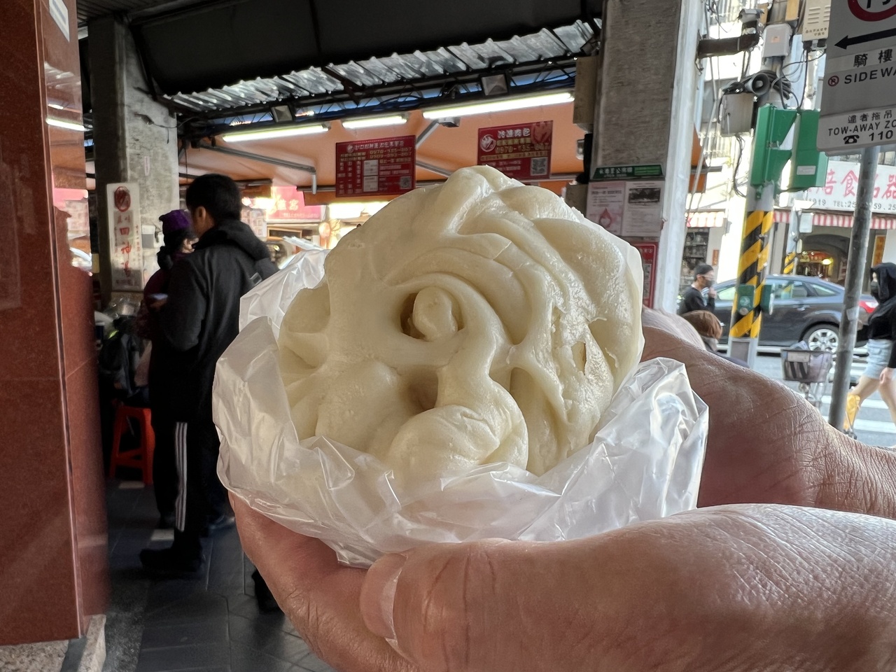 迪化街、ちょうど中間あたり、通りの角にある大人気のお店。並んでいます。